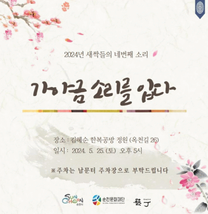 ¿ÃÇØ·Î ³× ¹øÂ°¸¦ ¸ÂÀÌÇÏ´Â '°¡¾ß±Ý ¼Ò¸®¸¦ ÀÔ´Ù' °ø¿¬Àº ¼øÃµ âÀÛ¿¹¼úÃÌ 2È£ ±èÇý¼ø ÇѺ¹°ø¹æ ¾Õ Á¤¿ø¿¡¼ ¿¸®´Â °ø¿¬ÀÌ´Ù.