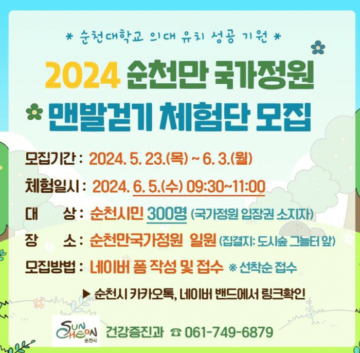 ¼øÃµ¸¸±¹°¡Á¤¿ø ¸Ç¹ß°È±â¿¡ Âü¿©¸¦ ¿øÇÏ´Â ½Ã¹ÎÀº ¼øÃµ½Ã ´ëÇ¥ SNS(īī¿ÀÅå ä³Î, ¹êµå, ºí·Î±×, ȨÆäÀÌÁö)¸¦ ÅëÇØ 6¿ù 3ÀϱîÁö ³×À̹ö ÆûÀ¸·Î ½Åû °¡´ÉÇÏ¸ç ¼±Âø¼ø ¸¶°¨µÈ´Ù.