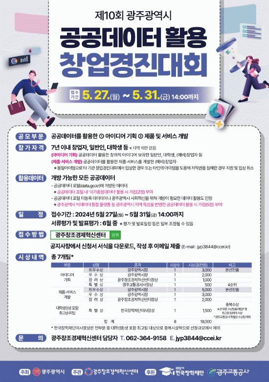 ¶Ç, ºÎ¹®º° ÃÖ¿ì¼öÀÛ 2°ÇÀº ±¤ÁÖâÁ¶°æÁ¦Çõ½Å¼¾ÅÍÀÇ Ã¢¾÷ ¸àÅ丵 Áö¿øÀ» ¹Þ¾Æ ÇàÁ¤¾ÈÀüºÎÀÇ ¡®Á¦12ȸ ¹üÁ¤ºÎ °ø°øµ¥ÀÌÅÍ È°¿ë â¾÷°æÁø´ëȸ¡¯ º»¼±¿¡ ±¤Áֽà ´ëÇ¥·Î Âü¿©ÇÑ´Ù.