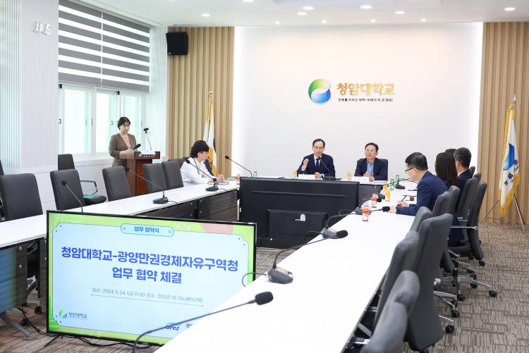À̳¯ Çù¾à½Ä¿¡´Â ¼Û»ó¶ô ±¤¾ç°æÁ¦Ã»Àå, ±è¼ºÈ« û¾Ï´ëÇб³ ÃÑÀå Á÷¹«´ëÇà, »êÇÐÇù·ÂóÀå µî 20¿© ¸íÀÌ Âü¼®ÇÑ °¡¿îµ¥ ÀÌ·ç¾îÁ³´Ù.