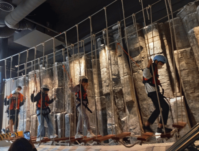 À̳¯ Ȱµ¿Àº À§ÇèÇÑ Àç³ »óȲ¿¡ ´ëºñÇϱâ À§ÇÑ ÈÆ·ÃÀ¸·Î, Áý¶óÀÎ(zip-line)À» ÀÌ¿ëÇØ °è°îÀ» Ⱦ´ÜÇϰųª ¸ö¿¡ ¾ÈÀüÀåÄ¡¸¦ ºÎÂøÇÏ°í ³ôÀº °÷¿¡¼ ÇϰÇÏ´Â »ê¾Ç¾ÈÀü°ú ÈÀç¾ÈÀü üÇèÀ¸·Î ÀÌ·ïÁ³´Ù.