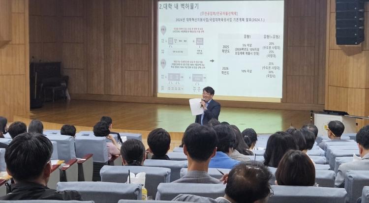 À̳¯ ¼Ûâ¼ö »ç¾÷´ÜÀåÀº ´ëÇÐÇõ½Å½ÅÁö¿ø»ç¾÷ÀÇ ¿øÈ°ÇÏ°í ¼º°øÀûÀÎ »ç¾÷ ¿î¿µÀ» À§ÇÏ¿© ´ëÇÐÇõ½ÅÁö¿ø»ç¾÷ ¥°À¯Çü(ÀÚÀ²Çù¾àÇü) ¹× ¥²À¯Çü(Áö¹æ´ëÇРȰ¼ºÈ) »ç¾÷¿¡ ´ëÇÑ ±âº»°èȹ°ú ÃßÁø ¹æÇâÀ» °øÀ¯Çϰí, Áö¿ª°ú ´ëÇÐÀÇ µ¿¹Ý¼ºÀåÀ» ÃßÁøÇϴ ü°èÀÎ ¡®RISE»ç¾÷¡¯¿¡ ´ëÇØ ¼³¸íÇß´Ù.