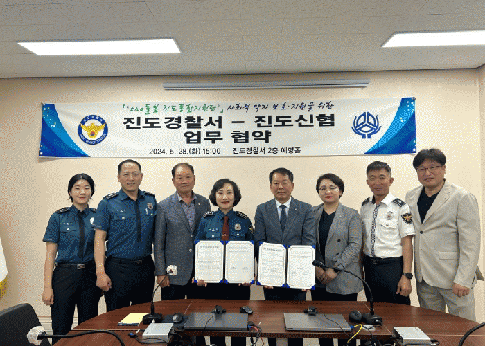 À̳¯ Çù¾à½Ä¿¡´Â ¹Ú¹Ì¿µ Áøµµ°æÂû¼ÀåÀ» ºñ·ÔÇÏ¿© °æÂû¼ °¢ °ú°èÀå ¹× Áøµµ½ÅÇù ±èµ¿´ö ÀÌ»çÀå µî Áøµµ½ÅÇù ÀÓ¿ø 3¸íÀÌ Âü¼®ÇÑ °¡¿îµ¥ º¹Áö »ç°¢Áö´ë¿¡ ³õÀÎ »çȸÀû ¾àÀÚ¸¦ À§ÇÑ Ä§±¸·ù ¹× ³¹æºñ Áö¿ø µîÀ» ÅëÇÑ º¸È£¡¤ Áö¿øÀº ¹°·Ð Áö¿ª °øµ¿Ã¼ Ä¡¾È Çù·ÂÀÇ ÁÖü·Î¼ ¾ÈÀüÇÑ Áøµµ¸¸µé±â À§ÇØ »óÈ£°£¿¡ Çù·ÂÀ» ´ÙÁüÇß´Ù.