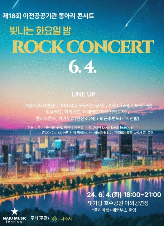 ¡®ºû³ª´Â È¿äÀÏ ¹ã ¶ô ÄܼƮ¡¯¸¦ ÁÖÁ¦·Î ÆîÃÄÁö´Â À̹ø °ø¿¬¿¡´Â Çõ½Åµµ½Ã ÀÌÀü°ø°ø±â°ü ¹êµå µ¿¾Æ¸® 8ÆÀ, Áö¿ª¿¬ÇÕ ¹êµå 1ÆÀÀÌ Âü°¡ÇØ ´ëÁß°¡¿ä¿Í ÆË¼Û µîÀ» ¼±º¸ÀÏ ¿¹Á¤ÀÌ´Ù.