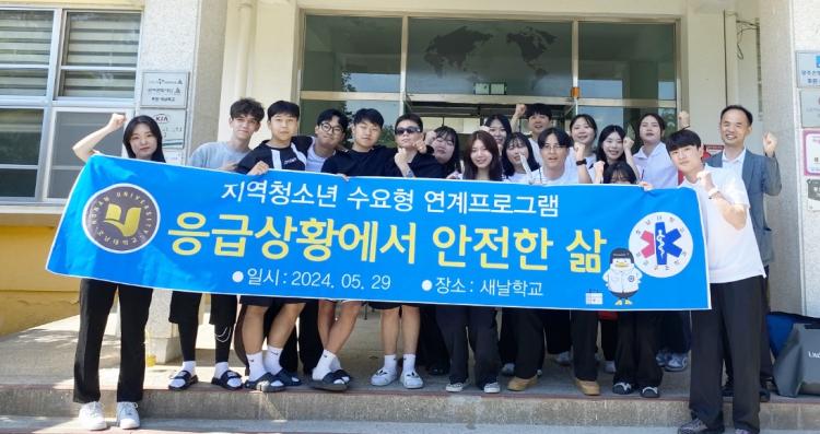 À̳¯ ÀÀ±Þ±¸Á¶Çаú ÀçÇлý 14¸íÀº »õ³¯Çб³ Áß°íµîÇлý 72¸íÀ» ´ë»óÀ¸·Î ½ÉÆó¼Ò»ý¼ú°ú »ýȰ ¼Ó ÀÀ±Þóġ ±³À°À» ÅëÇØ »õ³¯Çб³ Áß°íµîÇлýµé¿¡°Ô ÀÀ±Þ±¸Á¶Çаú Áø·ÎŽ»öÀÇ ±âȸ¸¦ Á¦°øÇß´Ù.