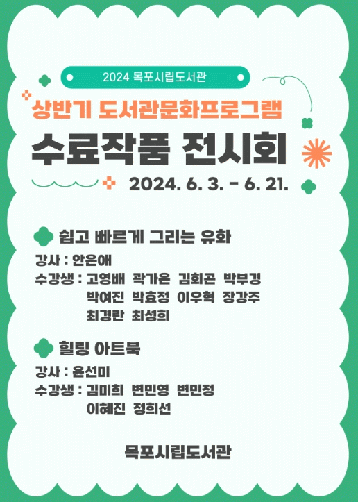 À̹ø Àü½Ãȸ´Â ¼ö°»ýµéÀÌ ±×µ¿¾È ¹è¿ì°í ¿Ï¼ºÇÑ ÀÛǰµéÀ» Àü½ÃÇÏ¿© °Á ¼ö·á¸¦ ±â³äÇϰí, µµ¼°üÀÇ ¹®ÈÇÁ·Î±×·¥À» ¾Ë¸®±â À§ÇØ ¸¶·ÃµÆ´Ù.