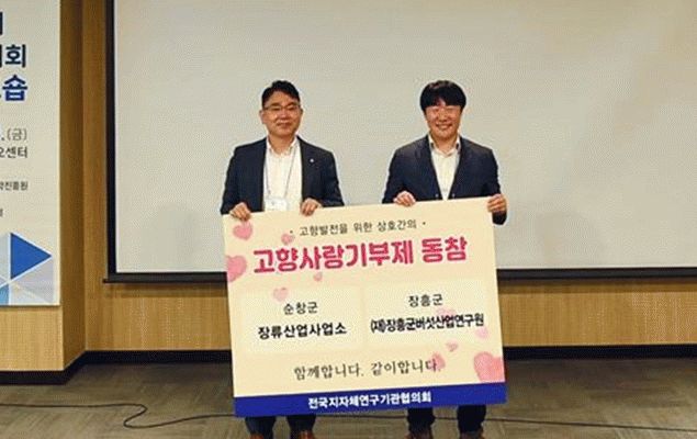 ±è¼º ÀåÈﱺ¼ö´Â ¡°ÁöÀÚüÀÇ Æ¯»ê¹° ¿¬±¸¸¦ À§ÇØ Èû¾²°í ÀÖ´Â µÎ ±â°üÀÌ ¶æÀ» ¸ð¾Æ °íÇâ»ç¶û±âºÎ¿¡ µ¿ÂüÇØ Áּż °¨»çµå¸°´Ù¡±¸ç ¡°ÁöÀÚü¿¬±¸±â°ü ÇùÀÇȸ¸¦ ÅëÇÏ¿© Áö¼ÓÀûÀ¸·Î ±³·ùÇØ Ư»ê¹° ¿¬±¸ÀÇ ½Ã³ÊÁö È¿°ú¸¦ ³¾ ¼ö ÀÖ±æ ¹Ù¶õ´Ù¡±°í ¸»Çß´Ù.