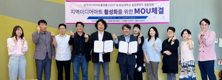 ¶ÇÇÑ ±¤Á̵ֹð¾î¾ÆÆ®Ç÷§Æû À̰æÈ£ ¼¾ÅÍÀåÀº ¡°°³°ü ÀÌ·¡ ù ¹øÂ° MOUü°áÀ» È£³²´ëÇб³ ½Ç°¨ÄÜÅÙÃ÷ À¶ÇÕÀü°ø°ú ÁøÇàÇÏ°Ô µÅ ¸Å¿ì ¶æ±í°í, Áö¿ªÀÇ ¹Ìµð¾î¾ÆÆ® Ȱ¼ºÈ¿Í ÀÎÀç¾ç¼ºÀ» À§ÇØ ³ë·ÂÇϰí Àִ ȣ³²´ëÇб³ ½Ç°¨ÄÜÅÙÃ÷ À¶ÇÕÀü°ø ÇлýµéÀÇ È°¾àÀÌ ¸Å¿ì ±â´ëµÈ´Ù¡±¸ç ¡°ÇϹݱâ ÇлýµéÀÇ ¹Ìµð¾î¾ÆÆ® ¹× ½Ç°¨ÄÜÅÙÃ÷ ÀÛǰ Àü½Ãȸ °³ÃÖ ¹× ¼¼¹Ì³ª µî ±³À°ÇÁ·Î±×·¥ Àû±Ø Áö¿ø°ú Áö¿ª ¹Ìµð¾î¾ÆÆ® Ȱµ¿ Ȱ¼ºÈ¿¡ Èû¾²°Ú´Ù¡±°í ¸»Çß´Ù.