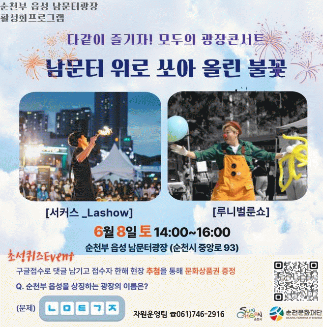 6¿ù 8ÀÏ¿¡´Â ¡®³²¹®ÅÍ À§·Î ½î¾Æ¿Ã¸° ºÒ²É¡¯À̶ó´Â ÁÖÁ¦·Î ¡ã³ªÀÏÁØ(¼Ä¿½º Lashow) ¡ãÀ̰æÃ¢ ·ç´Ï¹ú·û¼î(Àú±Û¸µ, ¸¶¼ú, ¹ú·é¼î) µî ´Ù°°ÀÌ Áñ±æ ¼ö Àִ üÇèÇü °ø¿¬ÀÌ ÁøÇàµÈ´Ù.