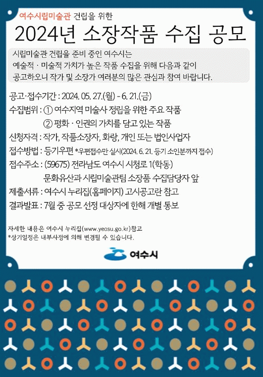 ¿©¼ö½Ã´Â °ø¸ð¸¦ ÅëÇØ ¡ã¿©¼öÁö¿ª ¹Ì¼ú»ç Á¤¸³À» À§ÇÑ ÁÖ¿äÀÛǰ ¡ãÆòÈ¡¤ÀαÇÀÇ °¡Ä¡¸¦ ´ã°í ÀÖ´Â ÀÛǰ µîÀÇ ¼ÒÀåǰÀ» È®º¸ÇÑ´Ù´Â °èȹÀÌ´Ù.