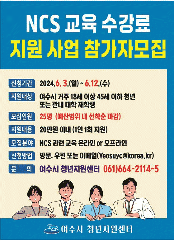ÇÑÆí ¿©¼ö½Ã´Â Áö³ÇØ Ã»³â 20¸í¿¡ ÃÑ 300¸¸ ¿øÀÇ NCS ±³À° ¼ö°·á¸¦ Áö¿øÇß´Ù.
