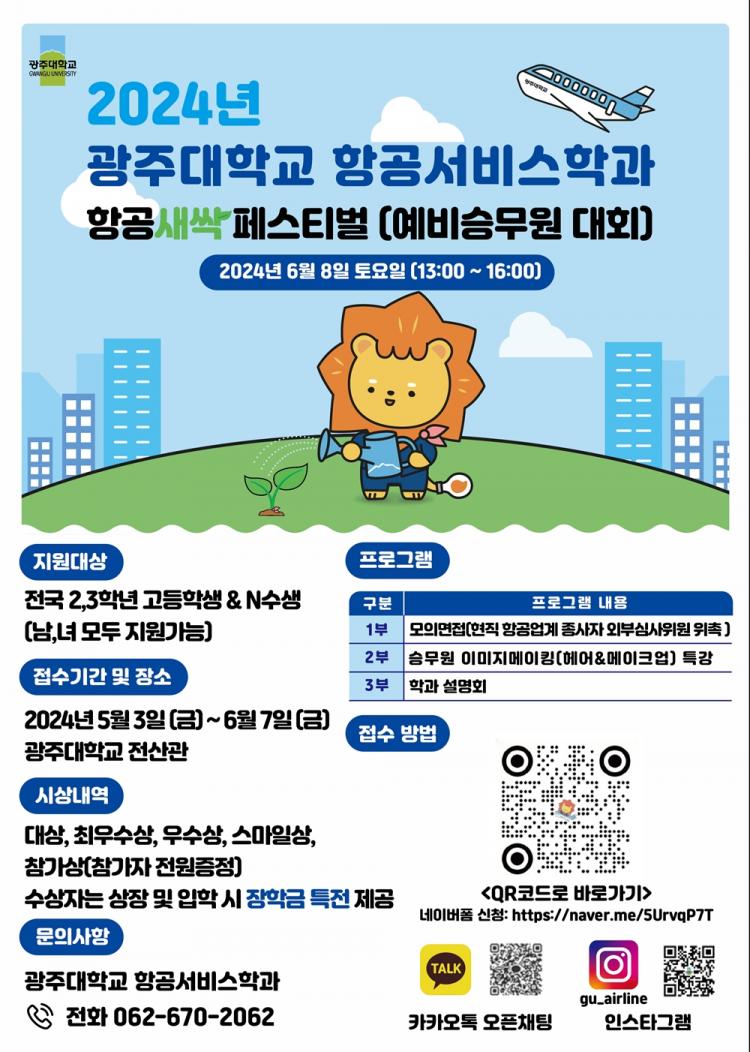 Áö³ 2022³âºÎÅÍ ½ÃÀÛÇÑ ¡®Ç×°ø »õ½Ï Æä½ºÆ¼¹ú¡¯Àº ¸Å³â ³²³à °íµîÇлý°ú ¼öÇè»ýÀ» ´ë»óÀ¸·Î ÇÏ´Â ±¤ÁÖ´ë Ç×°ø¼ºñ½ºÇаú üÇè ÇÁ·Î±×·¥À¸·Î ¿ÃÇØ´Â ¹«¾ËÄڿà ĬÅ×ÀÏ ¸¸µé±â, ½Â¹«¿ø Çì¾î&¸ÞÀÌÅ©¾÷ ½Ç½À, ÀçÇлýµé°ú Ä£±³ÀÇ ½Ã°£À» °¡Áú ¿¹Á¤ÀÌ´Ù.