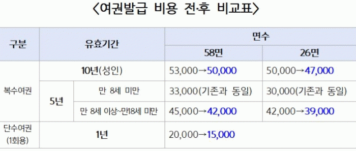 º¹¼ö¿©±Ç(5³â)Àº ¡ã58¸é±âÁØ 4¸¸2õ¿ø ¡ã26¸é±âÁØ 3¸¸9õ¿øÀ¸·Î ÀÎÇÏ, ´Ü¼ö¿©±Ç(1³â)Àº 5õ¿øÀ̾ú´ø ±¹Á¦±³·ù±â¿©±ÝÀÌ ¸éÁ¦µÅ ±âÁ¸ 2¸¸¿ø¿¡¼ 1¸¸5õ¿øÀ¸·Î ÀÎÇϵȴÙ.