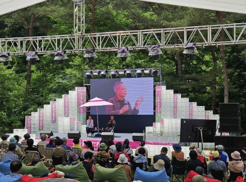 À̳¯ Çà»ç´Â ¹«µî»ê Àι®ÃàÁ¦ ÇÁ·Î±×·¥ÀÇ ÇϳªÀÎ ¡®Àι®ÅäÅ©¡¯ ÇüÅ·ΠÁøÇàµÆ´Ù. ±è¿ëÅà ½ÃÀÎÀº ¡®ÀÚ¿¬ÀÌ ¸»ÇÏ´Â °ÍÀ» ¹Þ¾Æ¾²´Ù¡¯¶ó´Â ÁÖÁ¦·Î ÀÚ¿¬°ú ¹®ÇÐÀÇ ¿¬°á°í¸®¿¡ ´ëÇØ ÁöÁ¤³² »çȸÀÚ¿Í ´ë´ã Çü½ÄÀ¸·Î °¿¬À» À̲ø¾î ³ª°¬´Ù.