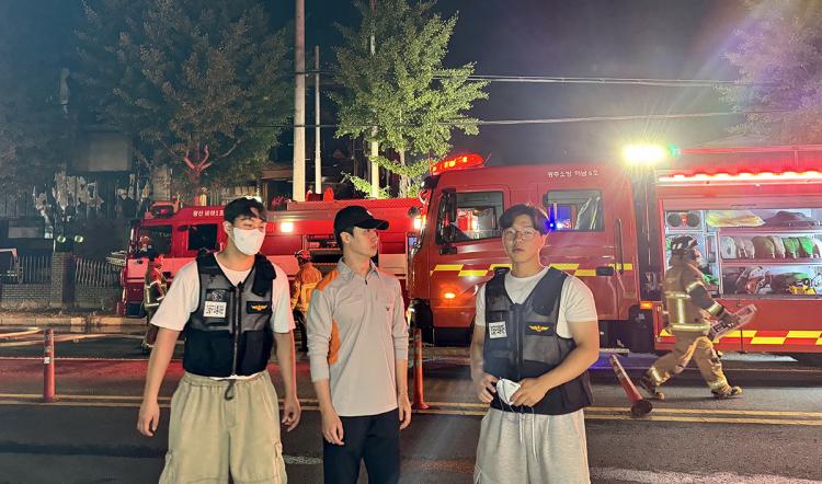 ½ÇÁ¦ ÈÀç½Å°í Á¢¼ö¿Í µ¿½Ã¿¡ °üÇÒ ±¤»ê¼Ò¹æ¼ Ã⵿Áö·ÉÀÌ ¹ß·ÉµÇÀÚ È£³²´ë ´ëÇлýÀü¹®ÀÇ¿ë¼Ò¹æ´ë¿¡µµ ÈÀç Ã⵿Áö·ÉÀÌ ÀüÆÄµÇ¾î ÈÀç¹ß»ý Àå¼Ò Àα٠Áö¿ª¿¡ °ÅÁÖÇÏ´Â ±èÁø¼Ö Çлý(4Çгâ), ¹®ÇöÁÖ Çлý(2Çгâ), ±èÈ«¼ö ´ëÀå(3Çгâ)ÀÌ ÇöÀå¿¡ Ã⵿ÇÏ¿© ±ä±Þ±¸Á¶ÅëÁ¦´Ü ¼³Ä¡ Áö¿ø ¹× ÁÖº¯ ±³ÅëÅëÁ¦, ¼Ò¹æ´ë¿ø ÈÞ½Ä ¹× °£½Ä Áö¿ø µîÀÇ ÈÀçÇöÀå Áö¿ø Ȱµ¿ ÀÓ¹«¸¦ ¼öÇàÇÏ¿´´Ù.
