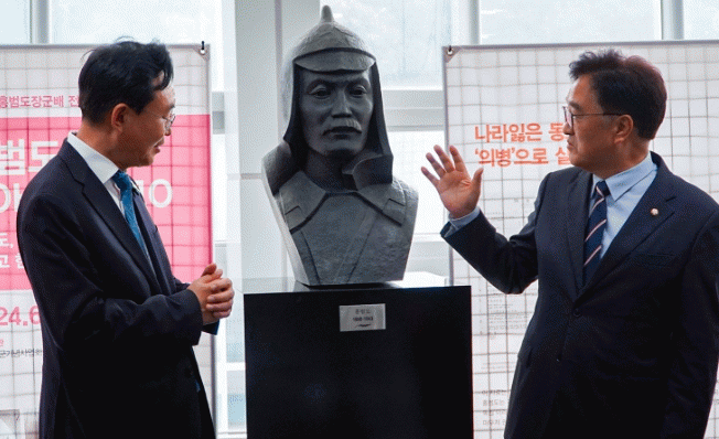 °³È¸½Ä¿¡¼± µ¶¸³ÀüÀï ¿µ¿õÀÎ È«¹üµµ À屺ÀÇ ¾÷ÀûÀ» ±â¸®´Â ¹¬³ä, ¿µ»ó, ±â³ä °ø¿¬ µîÀÌ ½Ä¼ø¿¡ Æ÷ÇԵŠ´ëȸ ÃëÁö¿Í Àǹ̸¦ µÇ»õ°å´Ù.