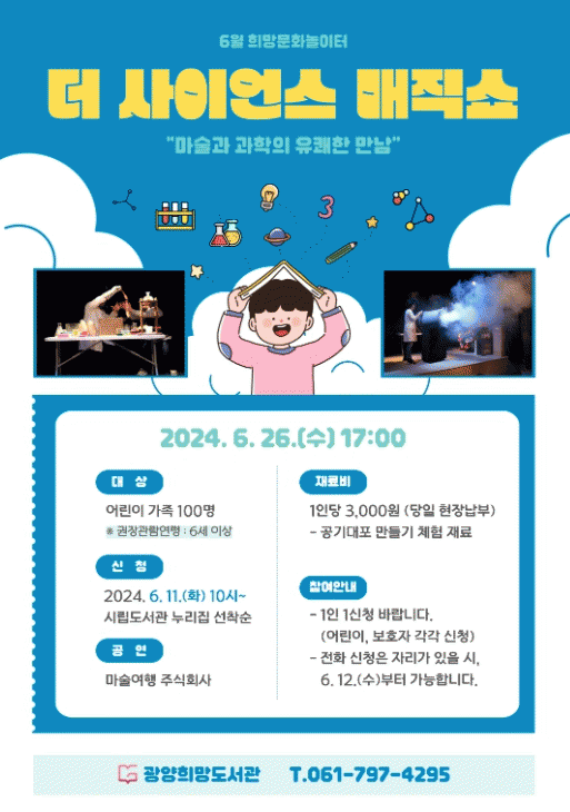 ¸Å¿ù ¸¶Áö¸· ÁÖ ¼ö¿äÀÏ ¹®È°¡ ÀÖ´Â ³¯°ú ¿¬°èÇØ ¿î¿µÇÏ´Â Èñ¸Áµµ¼°üÀÇ Æ¯º° ÇÁ·Î±×·¥ ¡®Èñ¸Á¹®È³îÀÌÅÍ¡¯°¡ À̹ø 6¿ù °ø¿¬À¸·Î °úÇи¶¼úÀ» ÁÖÁ¦·Î ÇÑ ¡®´õ »çÀ̾𽺠¸ÅÁ÷¼î¡¯¸¦ ¼±º¸ÀδÙ.