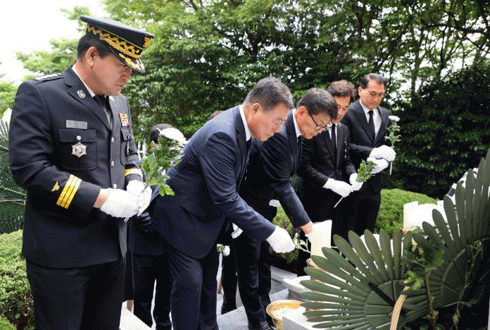 Ãß³ä½Ä¿¡´Â ±è»ê ±º¼ö¸¦ ºñ·ÔÇÏ¿©, ¼»ï¼® ±¹È¸ÀÇ¿ø, ÀÓµ¿Çö ¹«¾È±ºÀÇȸ ºÎÀÇÀå, Àü³²µµ¡¤¹«¾È±ºÀÇȸ ÀÇ¿ø, º¸ÈÆ´ÜüÀå, º¸Èư¡Á·, ±â°ü¡¤»çȸ´ÜüÀå, °ø¹«¿ø µî 250¿© ¸íÀÌ Âü¼®ÇÑ °¡¿îµ¥ °æ°ÇÇÏ°í ¾ö¼÷ÇÑ ºÐÀ§±â ¼Ó¿¡¼ ¼ø±¹¼±¿ÀÇ ¶æÀ» ±â¸®°í Ã߸ðÇß´Ù.