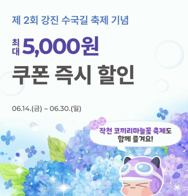 ¸Ô±úºñ ¾îÇà ³» 1¸¸5,000¿ø ÀÌ»ó Áï½Ã °áÁ¦ ½Ã, 3,000¿ø ÇÒÀÎ ÄíÆù°ú 5,000¿ø ÇÒÀÎ ÄíÆùÀÌ Á¦°øµÇ¸ç, ÇÑ »ç¶÷ ´ç ¸ÅÀÏ 1ȸ ÇýÅÃÀ» ¹ÞÀ» ¼ö ÀÖ°í, °¡¸ÍÁ¡¿¡¼ ¹ßÇàÇÑ ÀÚü ÇÒÀÎÄíÆùÀÌ ÀÖ´Â °æ¿ì Áߺ¹ Àû¿ëµÅ Ãß°¡ ÇÒÀÎÀÌ °¡´ÉÇÏ´Ù.