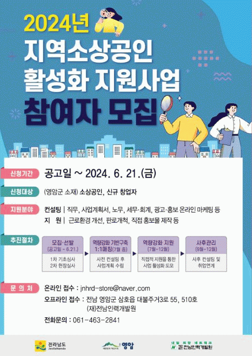 »ç¾÷ ¾È³»´Â Àü³²Àη°³¹ß¿ø¿¡¼ Çϰí, Á¢¼ö´Â ¹æ¹®À̳ª À̸ÞÀÏ·Î ÇÒ ¼ö ÀÖ´Ù.