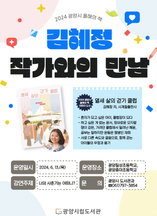 ±èÇýÁ¤ ÀÛ°¡´Â ¡®³ÊÀÇ »çÃá±â´Â ¾î¶°´Ï?¡¯¸¦ ÁÖÁ¦·Î ¡ã'¿¼¼ »ìÀÇ °È±â Ŭ·´'À» ÅëÇØ º¸´Â »çÃá±âÀÇ ÀÇ¹Ì ¡ãÇö¸íÇÏ°Ô »çÃá±â º¸³»´Â ¹æ¹ý µî¿¡ ´ëÇØ µé·ÁÁÖ°í Çлýµé°ú °Ç°ÇÑ ¼ºÀå¿¡ °üÇÑ À̾߱⸦ ³ª´ ¿¹Á¤ÀÌ´Ù.