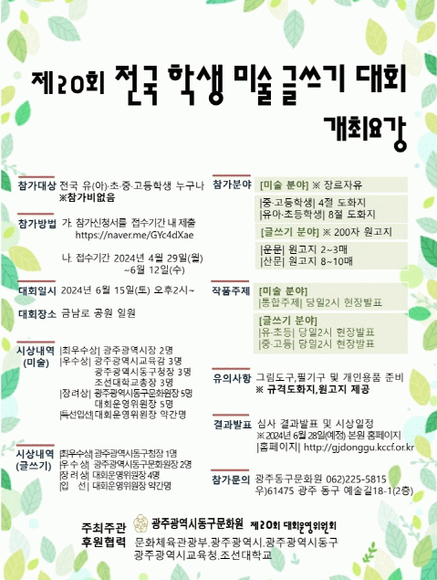 ¹®ÈüÀ°°ü±¤ºÎ°¡ ÈÄ¿øÇÏ°í ±¤ÁÖ±¤¿ª½Ã µ¿±¸¹®È¿øÀÌ ÁÖ°üÇÏ´Â À̹ø ´ëȸ´Â Àڶ󳪴 û¼Ò³âµé¿¡°Ô ±×¸²°ú ±Û¾²±â¸¦ ÅëÇØ ÀáÀçÀû ¿¹¼ú ¼ÒÁúÀ» °³¹ßÇÏ°í ¹®È ¿¹¼úÀÇ µµ½Ã ±¤ÁÖÀÇ Áø¸é¸ñÀ» Àü±¹¿¡ ¾Ë¸®±â À§ÇØ 2004³âºÎÅÍ ½ÃÀÛµÈ Àü±¹´ÜÀ§ÀÇ Çà»ç´Ù.
