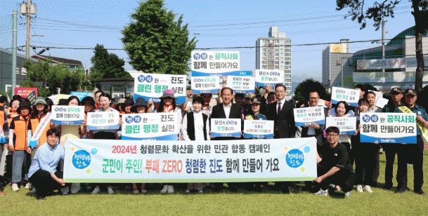À̹ø û·Å¹®È È®»êÀ» À§ÇÑ ¹Î°ü ÇÕµ¿ ¿îµ¿Àº û·Å ÀǽÄÀ» ³ô¿© °øÁ¤Çϰí Åõ¸íÇÑ °øÁ÷¹®È Á¶¼ºÀ» À§ÇØ Áøµµ°æÂû¼, Áøµµ¼Ò¹æ¼, ³ì»ö¾î¸Ó´Ïȸ µî 40¿© ¸íÀÌ Âü¿©Çß´Ù.