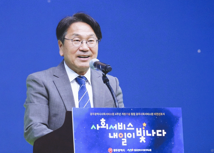 °±âÁ¤ ±¤ÁÖ½ÃÀåÀº ¡°º¹Áö¿¬±¸¿ø°ú »çȸ¼ºñ½º¿øÀÌ ÇÑ ¸öÀÌ µÈ ÅëÇÕ ±¤ÁÖ»çȸ¼ºñ½º¿øÀº ±¤ÁÖº¹ÁöÀÇ ±âµÕÀ̰í, ¿ì¸®ÀÇ °øÅë ¸ñÇ¥´Â °ø°øµ¹º½ °ÈÀÌ´Ù¡±¸ç ¡°µ¹º½¼ö¿ä Áõ°¡°¡ ½Ã´ëÀÇ È帧À̶ó´Â È®½Å ¼Ó¿¡¼ ¿©·¯ ¾î·Á¿òÀ» µ¹ÆÄÇϱâ À§ÇÑ ´©±¸µµ °¡º» Àû ¾ø´Â ½Ãµµ¿´´Ù. º¹Áö Á¶»ç¿¬±¸´Â º¹Áö¼ºñ½ºÀÇ ÁúÀ» ³ôÀ̰í, ¼ºñ½ºÀÇ °á°ú´Â ´Ù½Ã ¿¬±¸µ¥ÀÌÅͷΠžÙ. ÀÌ·¯ÇÑ µµÀü°ú Çõ½Å ´öºÐ¿¡ ±¤ÁÖÀÇ º¹Áö´Â ÇÑÃþ ´õ ¼º¼÷ÇØÁú °ÍÀÌ´Ù¡±°í °Á¶Çß´Ù.