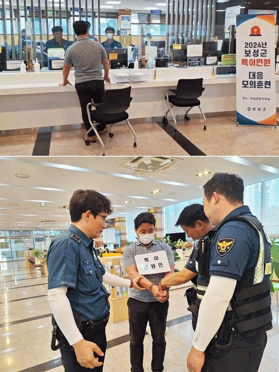 À̹ø ÈÆ·ÃÀº Æø¾ð.ÆøÇà µî ¹Î¿ø½Ç ³» ƯÀ̹οø¿¡ ´ëºñÇÏ°í ºñ»ó »óȲ ¹ß»ý ½Ã ´ëÀÀ´É·ÂÀ» Çâ»óÇϰíÀÚ ¹Î¿ø ´ã´ç °ø¹«¿øµéÀÇ ¿ªÇÒÀ» »çÀü¿¡ ºÎ¿©ÇØ º¸¼º°æÂû¼¿Í ÇÕµ¿À¸·Î ÁøÇàÇß´Ù.