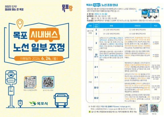ÀÌ¿Í ÇÔ²² ¹ö½º ¿îÇàÀÇ È¿À²¼ºÀ» ³ôÀ̱â À§ÇØ °£¼±3¹øÀÇ »ïÇÐÆÄÃâ¼Ò~»ïÇеµÀÔ±¸ ±¸°£À» ÇÑ¿ï¿þµùȦ~ÀÚÀ¯½ÃÀåÀ¸·Î, ¹ö½ºÅ͹̳Î~À̸¶Æ® ±¸°£À» ¹ö½ºÅ͹̳Î~ûȣ½ÃÀåÀÔ±¸·Î º¯°æÇϸç, ³¶¸¸33(33-1)¹øÀÇ ¸ñÆ÷¿ª~¸ñÆ÷¼¼¹«¼ ±¸°£À» û¼Ò³â¹®È¼¾ÅÍ·Î º¯°æÇÏ´Â µî ³ë¼±À» ÀϺΠÁ¶Á¤ÇÑ´Ù.