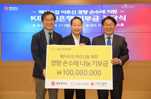 ¼¿µÀÍ KB±¹¹ÎÀºÇà ºÎÇàÀåÀº ¡°À̹ø °æ·® ¼Õ¼ö·¹ ±âºÎ±Ý Àü´Þ·Î ÆóÁö ¼öÁý ¾î¸£½Åµé¿¡°Ô ÈûÀÌ µÇ±æ ¹Ù¶õ´Ù¡±¸ç ¡°KB±¹¹ÎÀºÇàÀº ±¤ÁÖ½ÃÀÇ ¿ªÁ¡ »ç¾÷¿¡ ÈûÀ» º¸Å°í, ±ÝÀ¶µ¿¹ÝÀڷμ ¿ªÇÒÀ» ´ÙÇØ ³ª°¡°Ú´Ù¡±°í ¹àÇû´Ù.