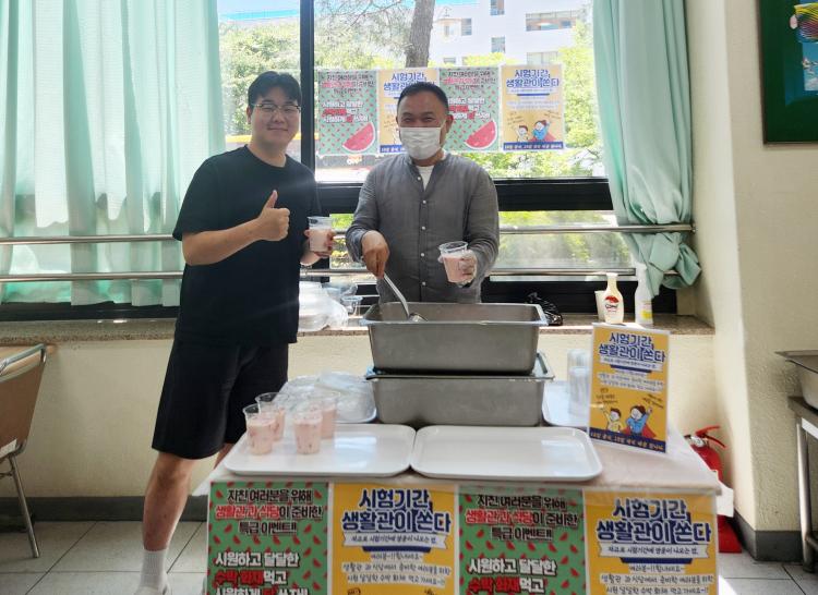 ±¤ÁÖ´ëÇб³ »ýȰ°üÀº ³· ÃÖ°í±â¿ÂÀÌ 35¡É¿¡ À°¹ÚÇÑ 18ÀÏ, ±â¼÷»ç ½Ä´ç ¿î¿µ¾÷ü ¡®Çϸð´Ï¡¯¿Í Çù¾÷À» ÅëÇØ ±â¸»°í»ç(18~21ÀÏ) ±â°£À» ¸ÂÀº ÀçÇлýµéÀ» °Ý·ÁÇϱâ À§ÇÑ ¼ö¹ÚÈä À̺¥Æ®¸¦ ¹ú¿´´Ù.