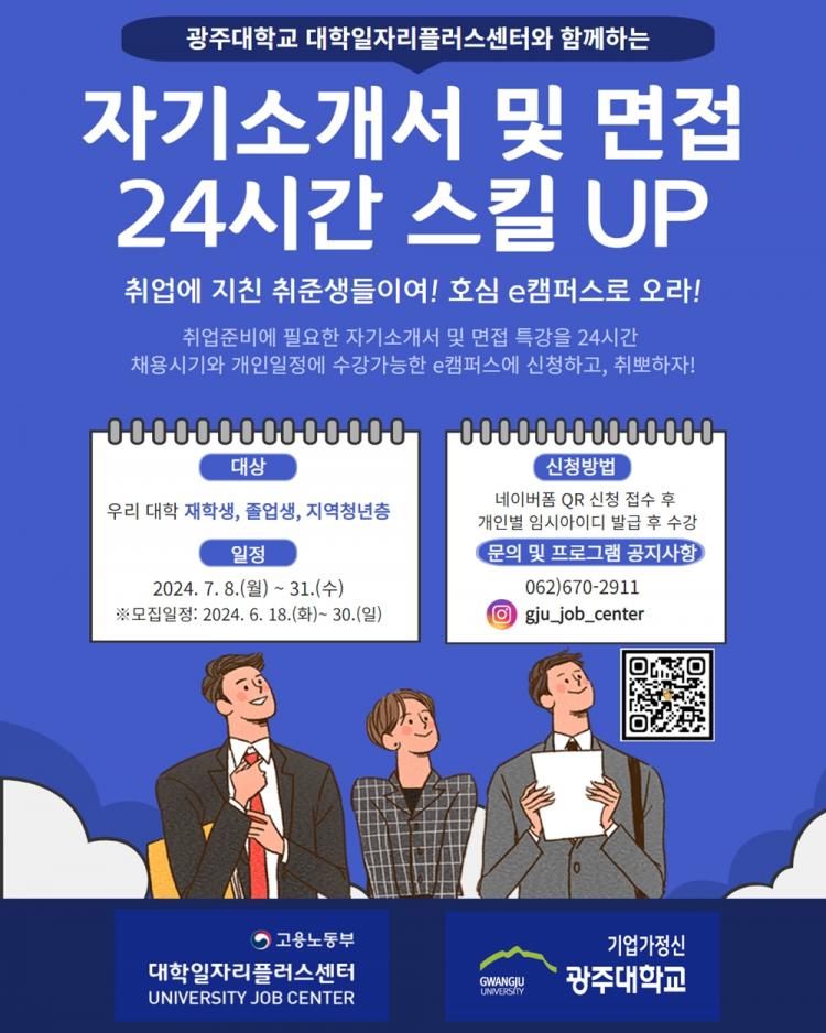 Âü¿© Èñ¸ÁÀÚ´Â ¿À´Â 6¿ù 30ÀϱîÁö ³×À̹öÆû QR ½Åû Á¢¼ö ÈÄ °³Àκ° Àӽà ¾ÆÀ̵𸦠¹ß±Þ¹Þ¾Æ ¼ö° °¡´ÉÇÏ´Ù. ±âŸ ±Ã±ÝÇÑ »çÇ×Àº ±¤ÁÖ´ë ´ëÇÐÀÏÀÚ¸®Ç÷¯½º¼¾ÅÍ(062-670-2911)·Î ¹®ÀÇÇÏ¸é µÈ´Ù.