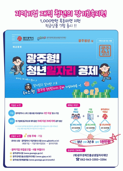 ÀÌ »ç¾÷Àº Áö¿ª Áß¼Ò±â¾÷ ÀçÁ÷ û³â¿¡°Ô ÀçÁ¤ Áö¿øÀ» ÅëÇØ Àå±â ±Ù¼Ó°ú Áö¿ª Á¤ÂøÀ» À¯µµÇϰí, ¹ÌÃë¾÷ û³âÀÇ Áö¿ª Áß¼Ò±â¾÷ À¯ÀÔ ÃËÁøÀ» À§ÇØ µµÀԵƴÙ. Áß¼Ò±â¾÷ ÀçÁ÷ û³âÀÌ 2³â °£ 500¸¸¿øÀ» ¸ðÀ¸¸é ±â¾÷(200¸¸¿ø)°ú ±¤ÁÖ½Ã(300¸¸¿ø)°¡ 500¸¸¿øÀ» Ãß°¡ Àû¸³ÇØ ¸¸±â°øÁ¦±Ý 1000¸¸¿øÀ» ¸¸µé¾îÁÖ´Â »ç¾÷ÀÌ´Ù.