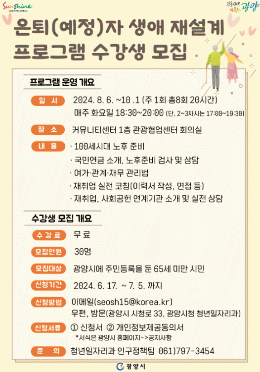 ÇÁ·Î±×·¥ Èñ¸ÁÀÚ´Â ¿À´Â 7¿ù 5ÀϱîÁö ±¤¾ç½Ãû û³âÀÏÀÚ¸®°ú·Î ¹æ¹® ¶Ç´Â ¿ìÆí, À̸ÞÀÏ·Î ½ÅûÇÏ¸é µÈ´Ù.