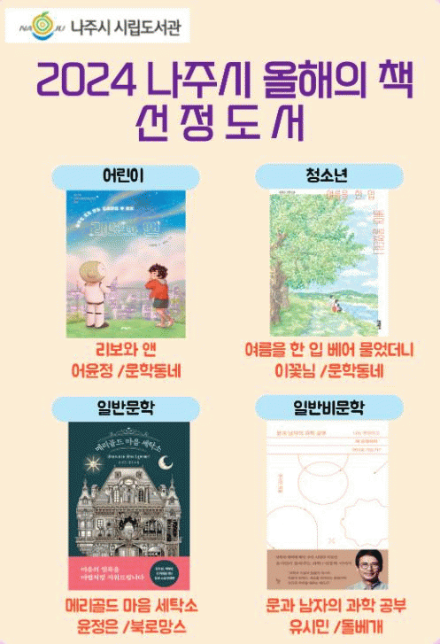 ¶ÇÇÑ 9, 10¿ù¿¡´Â ³ªÁֽà ¿ÃÇØÀÇ Ã¥À» ºñ·ÔÇÑ µ¶¼°¨»ó¹® ¿ì¼öÀÛÀ» ¼±Á¤ÇØ ½Ã»óÇÏ´Â ¡®Á¦21ȸ ³ªÁֽà µ¶¼¿Õ ¼±¹ß´ëȸ¡¯¸¦ °³ÃÖÇÒ ¿¹Á¤ÀÌ´Ù.