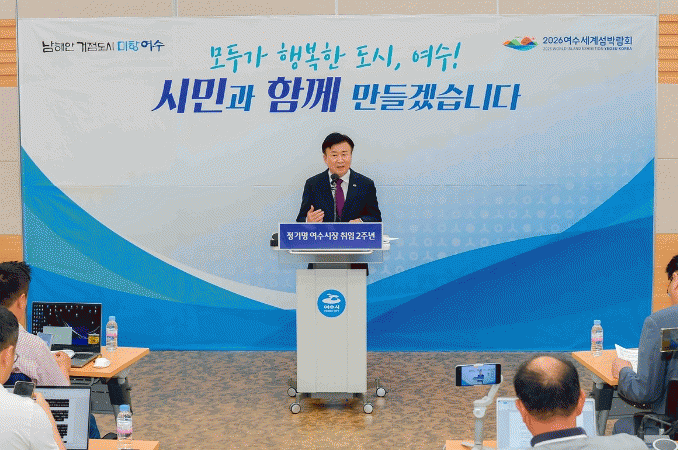 27ÀÏ ½Ã¿¡ µû¸£¸é, À̳¯ Á¤±â¸í ¿©¼ö½ÃÀåÀº ½Ãû ȸÀǽǿ¡¼ ¹Î¼±8±â ÃëÀÓ 2Áֳ⠱âÀÚȸ°ßÀ» °®°í ¡®20´ë ÇÙ½É ¼º°ú¡¯¿Í ¡®¿ªÁ¡ ÇÁ·ÎÁ§Æ®100¡¯ µî ±×°£ÀÇ ¼º°ú¿Í ÇâÈÄ ½ÃÁ¤¿î¿µ¹æÇâ¿¡ ´ëÇØ ¹ßÇ¥Çß´Ù.