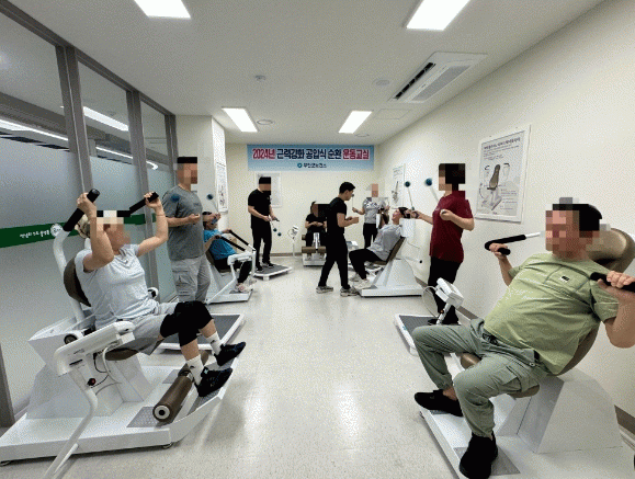 ºñ¸¸¿¹¹æ½Ç¿¡´Â °ø¾Ð½Ä ±Ù·Â¿îµ¿ Àåºñ¿Í ¿¡¾îº¸µå°¡ ÀÖ¾î ´ë»óÀÚº°·Î °µµ¿Í ¿îµ¿´Ü°è¸¦ Á¶ÀýÇÑ ±Ù·Â¿îµ¿°ú À¯»ê¼Ò ¿îµ¿À» ÅëÇØ °Ç°ÇÑ ÀûÁ¤Ã¼ÁßÀ» À¯ÁöÇÏ°í ±ÔÄ¢ÀûÀÎ ¿îµ¿ ½À°üÀ» Çü¼ºÇÒ ¼ö ÀÖ´Ù.