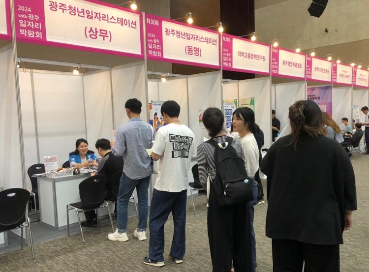 ´ëÇÐÀÏÀÚ¸®Ç÷¯½º¼¾ÅÍ´Â À̳¯ ¡®2024 with ±¤ÁÖ ÀÏÀÚ¸®¹Ú¶÷ȸ¡¯¸¦ ãÀº Áö¿ª û³âµé¿¡°Ô Ãë¾÷Áغñ ¾î·Á¿ò¿¡ ´ëÇÑ À̾߱⸦ µè°í °Ý·ÁÇϸç ÀÀ¿øÇÏ¿´´Ù. ¶ÇÇÑ ¼ÒÁ¤ÀÇ ¼±¹°À» Á¦°øÇϸç Ãë¾÷ ÇÕ°ÝÀ» ÀÀ¿øÇÏ°í ±¤ÁÖû³âÀÏÀÚ¸®½ºÅ×À̼Ç(»ó¹«)°ú ÇÔ²² Ãë¾÷ ¿ª·® °È¸¦ À§ÇÑ Ãë¾÷ »ó´ã, ÀÚ°ÝÁõ °úÁ¤ ¹× Ãë¾÷Ư°À» ²ÙÁØÈ÷ Á¦°øÇØ ÁÙ °ÍÀ» ¾à¼ÓÇß´Ù.