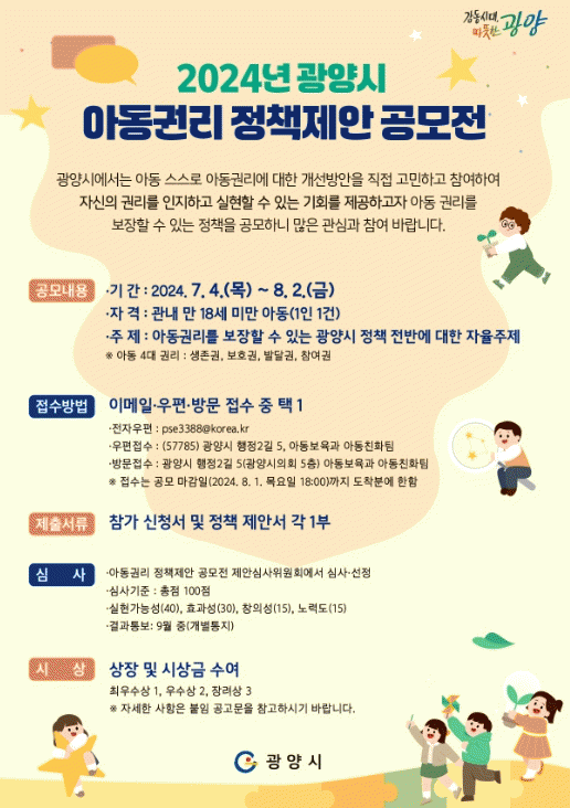 ÀÚ¼¼ÇÑ »çÇ×Àº ±¤¾ç½Ãû ȨÆäÀÌÁö¸¦ ÅëÇØ È®ÀÎÇÒ ¼ö ÀÖÀ¸¸ç, °ø¸ð °ü·Ã ¹®ÀÇ´Â ±¤¾ç½Ã ¾Æµ¿º¸À°°ú ¾Æµ¿Ä£ÈÆÀÀ¸·Î ÀüÈÇÏ¸é µÈ´Ù.