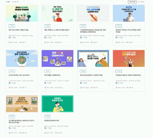 ±¤Áֿ¿¡¼ ½Ã¹Î Á¤Ã¥Âü¿©´Ü¿¡ °¡ÀÔ ÈÄ ¼³¹®Á¶»ç¿¡ Âü¿©ÇÒ ¼ö ÀÖÀ¸¸ç, ¼³¹®Á¶»ç°¡ ÀÖÀ» ¶§¸¶´Ù ¹ß¼ÛµÇ´Â ¾Ë¸²ÅåÀÇ ¸µÅ©¸¦ ÅëÇØ ¼³¹®¿¡ Âü¿©ÇÏ¸é ¸¶Àϸ®Áö°¡ Àû¸³µÈ´Ù.