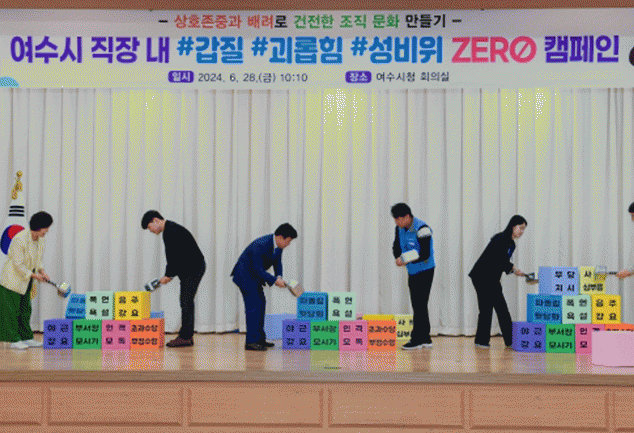 ½Ã¿¡ µû¸£¸é À̳¯ ½Ãû ´ëȸÀǽǿ¡¼ Á¤±â¸í ¿©¼ö½ÃÀå°ú ±èµ¿Çö °ø¹«¿ø ³ëµ¿Á¶ÇÕÀ§¿øÀå, 5±Þ ÀÌ»ó °£ºÎ °ø¹«¿ø µî 50¿© ¸íÀÌ Âü¿©ÇÑ °¡¿îµ¥ ¡®Á÷Àå ³» 3´ë ºñÀ§ÇàÀ§ ZERO¡¯ Ä·ÆäÀÎÀ» ÆîÃÆ´Ù.