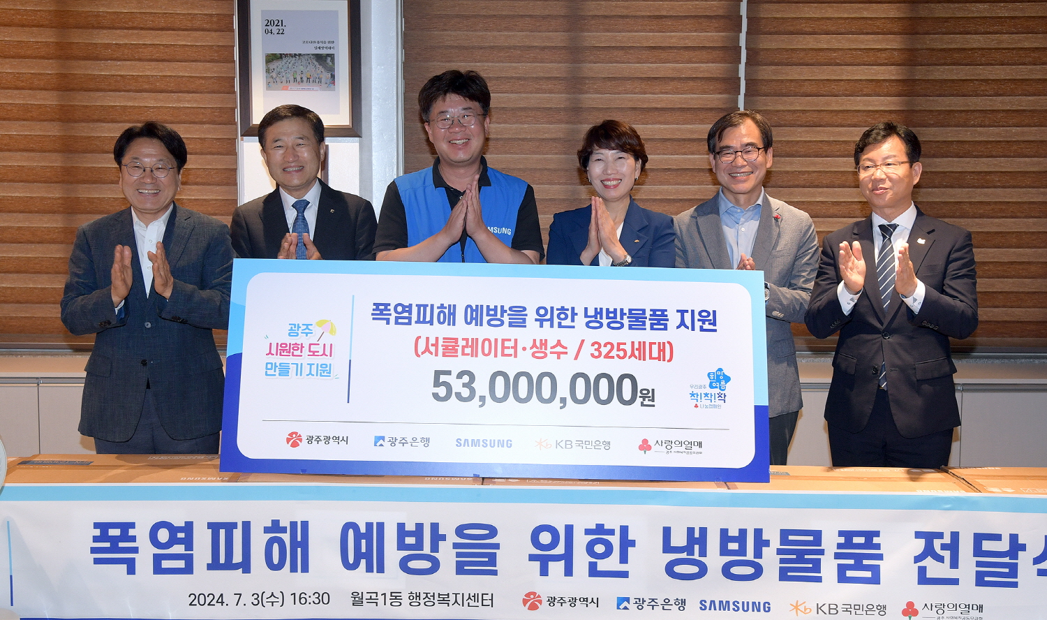 À̳¯ Á¤Ã¥¼Òdz¿¡¼´Â Ãë¾à°èÃþÀÇ ½Ã¿øÇÑ ¿©¸§³ª±â¸¦ À§ÇÑ ±âºÎ¹°Ç° Àü´Þ½Äµµ ¿·È´Ù. ±¤ÁÖÀºÇà, »ï¼ºÀüÀÚ, KB±¹¹ÎÀºÇàÀº 5300¸¸¿ø »ó´çÀÇ ¿¡¾î¼Å§·¹ÀÌÅÍ, »ý¼ö µî ³Ã¹æ¹°Ç°À» ±âºÎÇß´Ù.