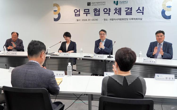[ÅåÅå´º½º]È£³²´ëÇб³(ÃÑÀå ¹Ú»óö)´Â 7¿ù 3ÀÏ ±¹¸³¾Æ½Ã¾Æ¹®ÈÀü´ç ´Ù¸ñÀûȸÀǽǿ¡¼ ±¹¸³¾Æ½Ã¾Æ¹®ÈÀü´çÀç´Ü(»çÀå ±è¼±¿Á)°ú ¾÷¹«Çù¾àÀ» ü°áÇϰí, ¾ç ±â°üÀÇ ³×Æ®¿öÅ©¿Í ÀÎÇÁ¶ó¸¦ Ȱ¿ëÇÏ¿© Áö¿ª ¹®ÈÀÇ È°¼ºÈ ¹× °ü·Ã »ê¾÷ ¹ßÀüÀ» À§ÇØ ÇÔ²² Çù·ÂÇØ ³ª°¡±â·Î Çß´Ù.
