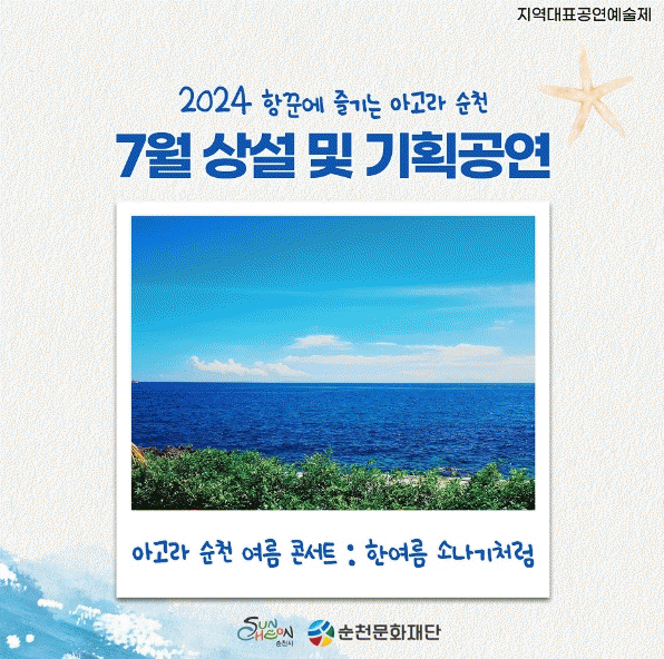 ¡®2024 ¾Æ°í¶ó ¼øÃµ¡¯Àº 7¿ù ÇÑ´Þ '¾Æ°í¶ó ¼øÃµ ¿©¸§ ÄܼƮ : ÇÑ¿©¸§ ¼Ò³ª±âó·³'À» ÁÖÁ¦·Î ½Ã¹Îµé°ú ¼øÃµÀ» ã´Â °ü±¤°´À» ´ë»óÀ¸·Î ¼øÃµ½Ã °÷°÷¿¡¼ ÇÑ¿©¸§ ¹«´õ¿î ¿±â¸¦ ½ÄÇôÁÙ °ø¿¬À» ÁøÇàÇÒ ¿¹Á¤ÀÌ´Ù.
