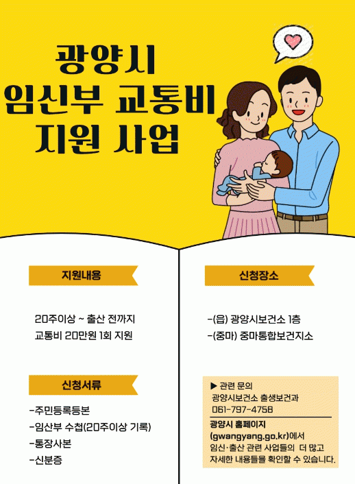 ÇÑÆí, ±¤¾ç½Ãº¸°Ç¼Ò´Â À̿ܿ¡µµ ½ÅÈ¥(¿¹ºñ)ºÎºÎ °Ç°°ËÁø, ÀӽźΠ»êÀü ¹«·á°ËÁø, ÀӽźΠ¿µ¾çÁ¦ ¹«·á Áö¿ø, °íÀ§Çè ÀÓ»êºÎ ÀÇ·áºñ Áö¿øÀ» Çϰí ÀÖÀ¸¸ç, ÃÖ±Ù 7¿ùºÎÅÍ´Â °í·É ÀӺΠÀÇ·áºñ¸¦ Áö¿øÇÏ´Â µî ¾ö¸¶¿Í ¾Æ±âÀÇ °Ç°ÁõÁøÀ» À§ÇÑ ´Ù¾çÇÑ »ç¾÷À» ½Ç½ÃÇϰí ÀÖ´Ù.