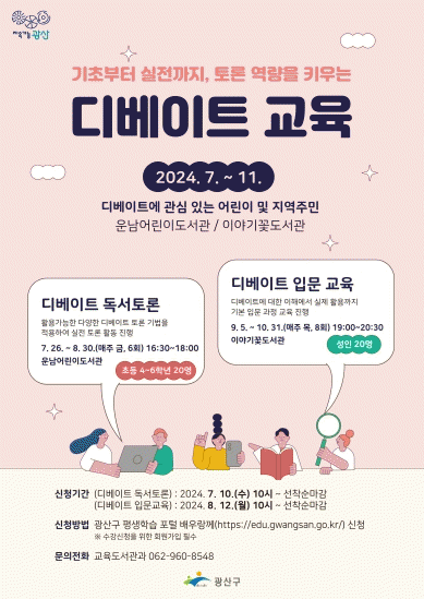 ½ÅûÀº ±¤»ê±¸ ÅëÇÕµµ¼°ü ´©¸®Áý¿¡¼ ¿Â¶óÀÎÀ¸·Î Á¢¼öÇÑ´Ù. ¿î³²¾î¸°À̵µ¼°ü ¡®µðº£ÀÌÆ® µ¶¼Åä·Ð¡¯Àº 10ÀϺÎÅÍ, À̾߱â²Éµµ¼°ü ¡®µðº£ÀÌÆ® ÀÔ¹® ±³À°¡¯Àº 8¿ù 12ÀϺÎÅÍ ½ÅûÇÒ ¼ö ÀÖ´Ù.