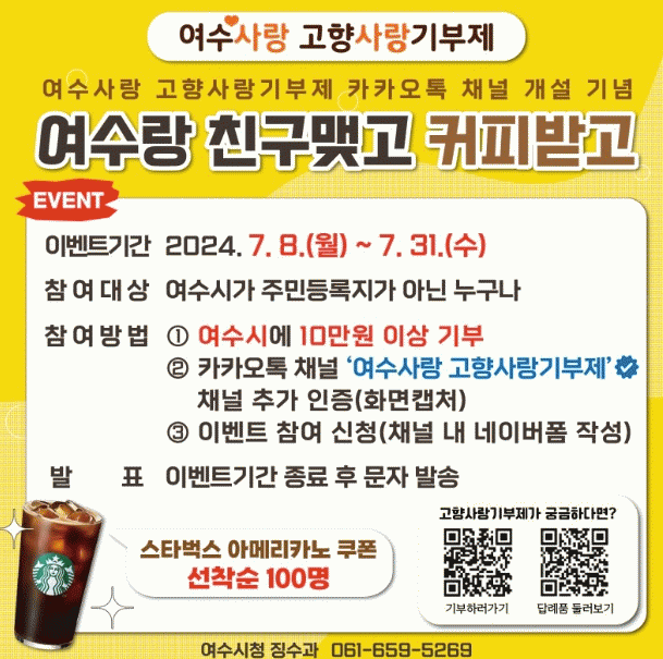 Âü¿© ´ë»óÀº °íÇâ»ç¶û±âºÎÁ¦¸¦ ÅëÇØ ¿©¼ö½Ã¿¡ 10¸¸ ¿ø ÀÌ»ó ±âºÎÇÑ »ç¶÷À¸·Î, ¡®¿©¼ö»ç¶û °íÇâ»ç¶û±âºÎÁ¦¡¯ īī¿ÀÅå ä³ÎÀ» Ãß°¡Çϰí ÀÎÁõ »çÁøÀ» Á¦ÃâÇÏ¸é µÈ´Ù.