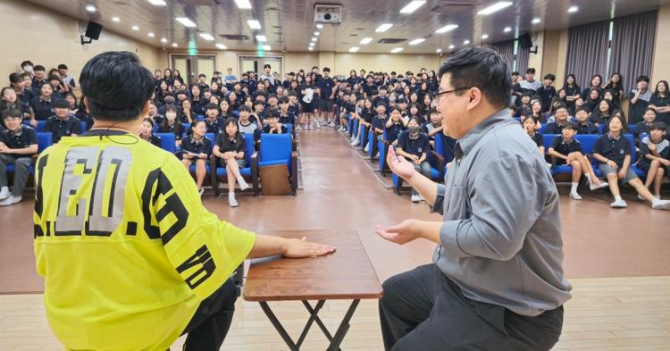 [ÅåÅå´º½º]È£³²´ë¶ö¶ö¶ó½ºÄð(´ëÇ¥ Á¤À±Èñ)Àº 7¿ù 10ÀÏ ³ªÁÖ ¸Å¼ºÁßÇб³(±³Àå ±èº´ÀÎ) ÀçÇлýµéÀ» ´ë»óÀ¸·Î ¡®Ã£¾Æ°¡´Â ¾ÆÆ®½ºÄð °ø¿¬¡¯À» ½Ç½ÃÇß´Ù.