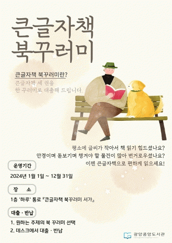 ±¤¾ç½Ã¸³µµ¼°üÀº »õ·Î¿î ÀüȯÁ¡ ¸¶·ÃÀ» À§ÇØ ³ë·ÂÇϰí ÀÖ´Ù. ¸ÂÃãÇü Ã¥ ²Ù·¯¹Ì ¼ºñ½º Á¦°ø ´ë»óÀ» ±âÁ¸ÀÇ À¯¾Æ Á߽ɿ¡¼ û¼Ò³â, ³ëÀÎÀ¸·Î ´Ù¾çÈÇßÀ¸¸ç, ½Ã¹Î µ¶ÀÚµéÀÇ °ü½É»ç¿Í ÃëÇâÀ» °í·ÁÇÑ ¸ÂÃãÇü ÁÖÁ¦Æ¯È ¼ºñ½º Á¦°øÀ¸·Î Á» ´õ Æí¸®ÇÏ°Ô Ã¥À» ¼±ÅÃÇÒ ¼ö ÀÖµµ·Ï ÇÑ °ÍÀÌ´Ù. 2024³â ½Ã¹Î µ¶¼È°µ¿ Áö¿ø »ç¾÷ÀÇ ³»¿ëÀº ´ÙÀ½°ú °°´Ù.